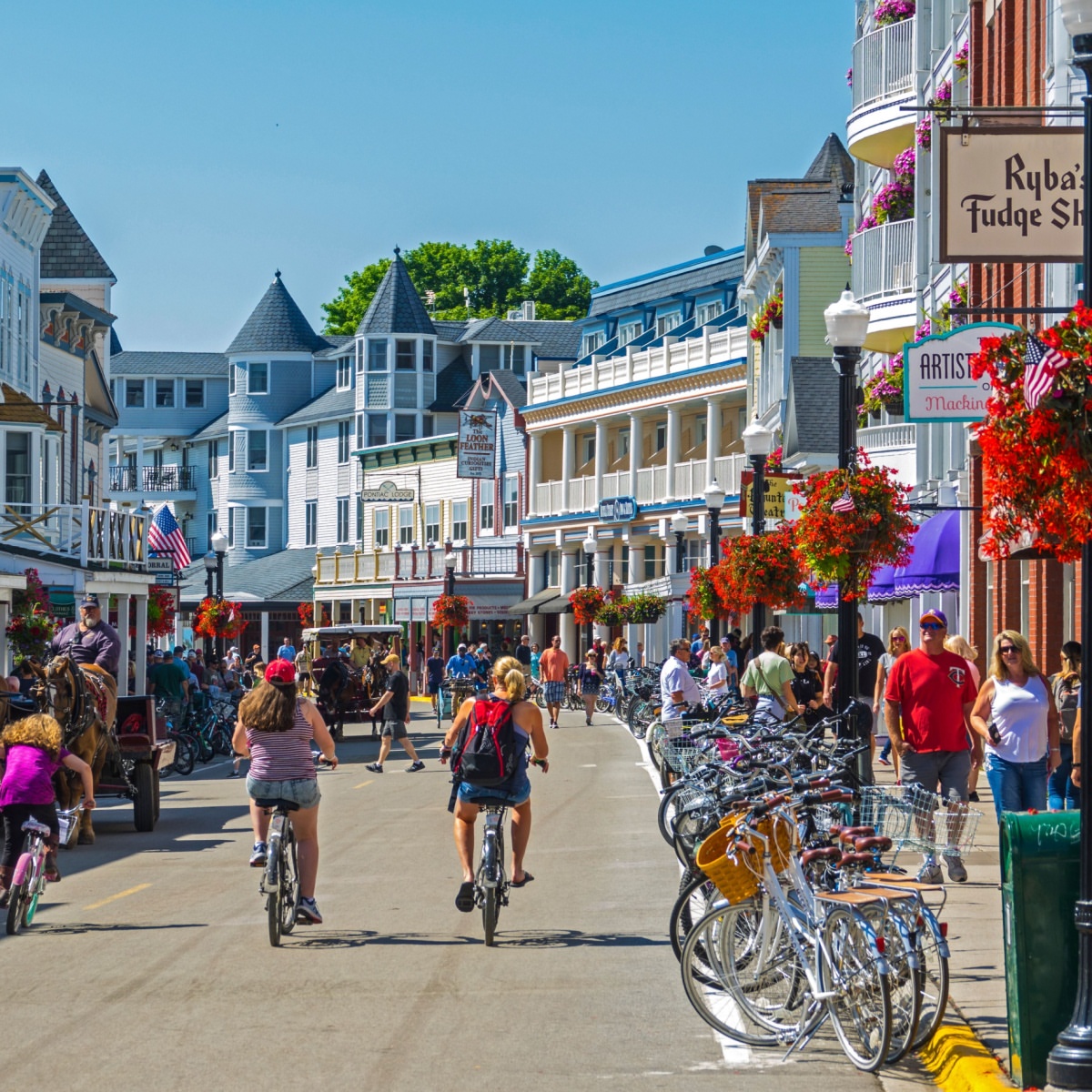 Imagine a place with no cars at all. On Mackinac Island, everyone gets around by bike or horse carriage. It is so quiet and peaceful. You have to take a ferry to get there.