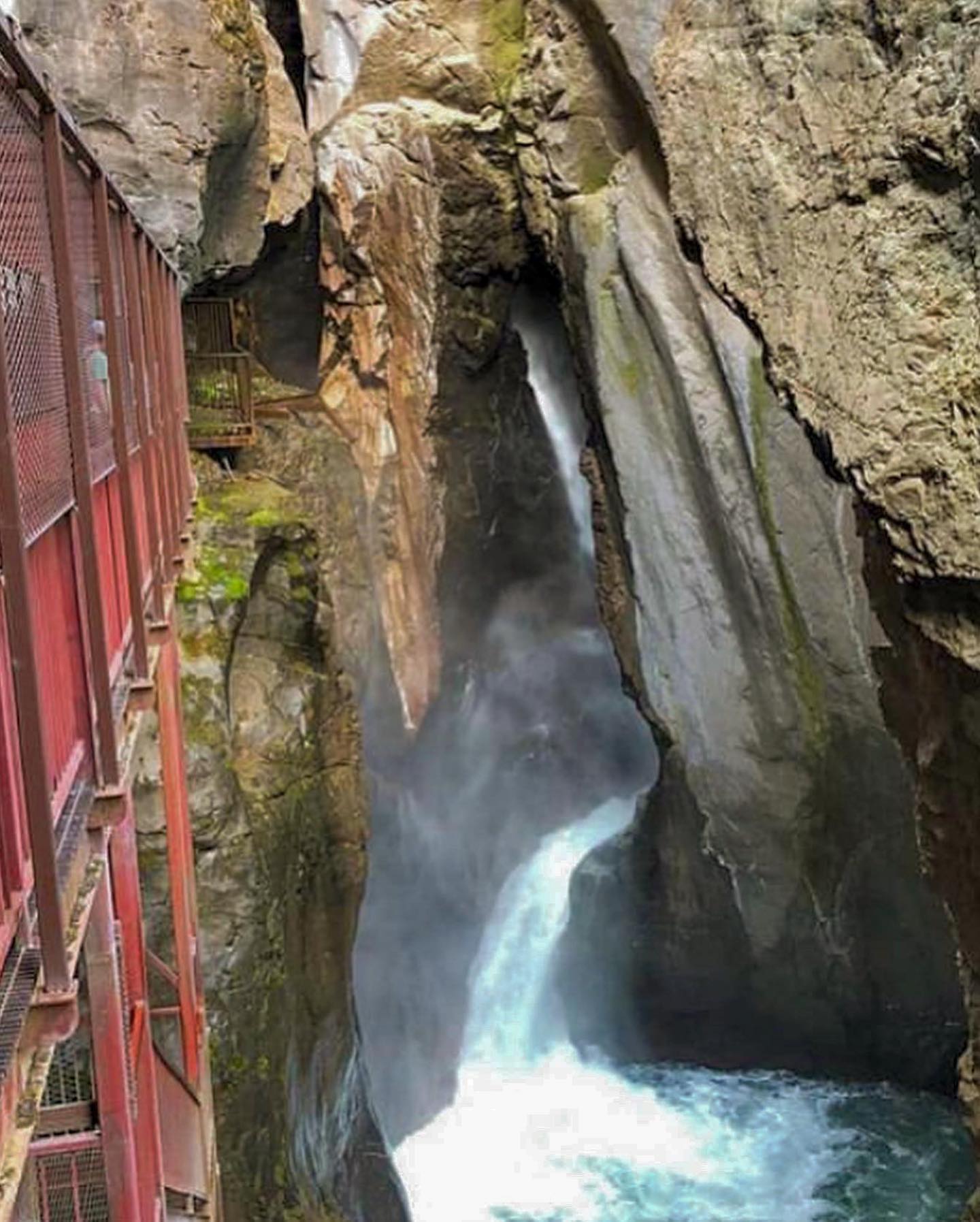 This is also in Ouray. But you get to walk into a narrow canyon where a waterfall thunders down.