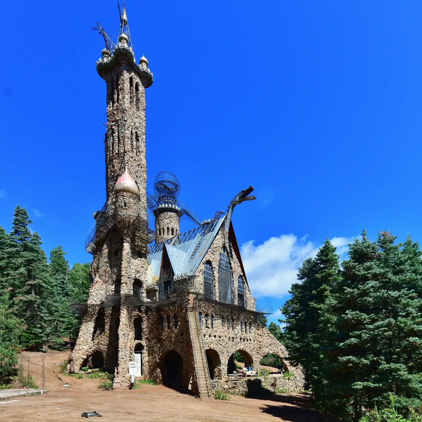 This is a real castle built by just one man named Jim Bishop. It is located in Rye and you do not have to pay to see it. It has iron bridges and a metal dragon.