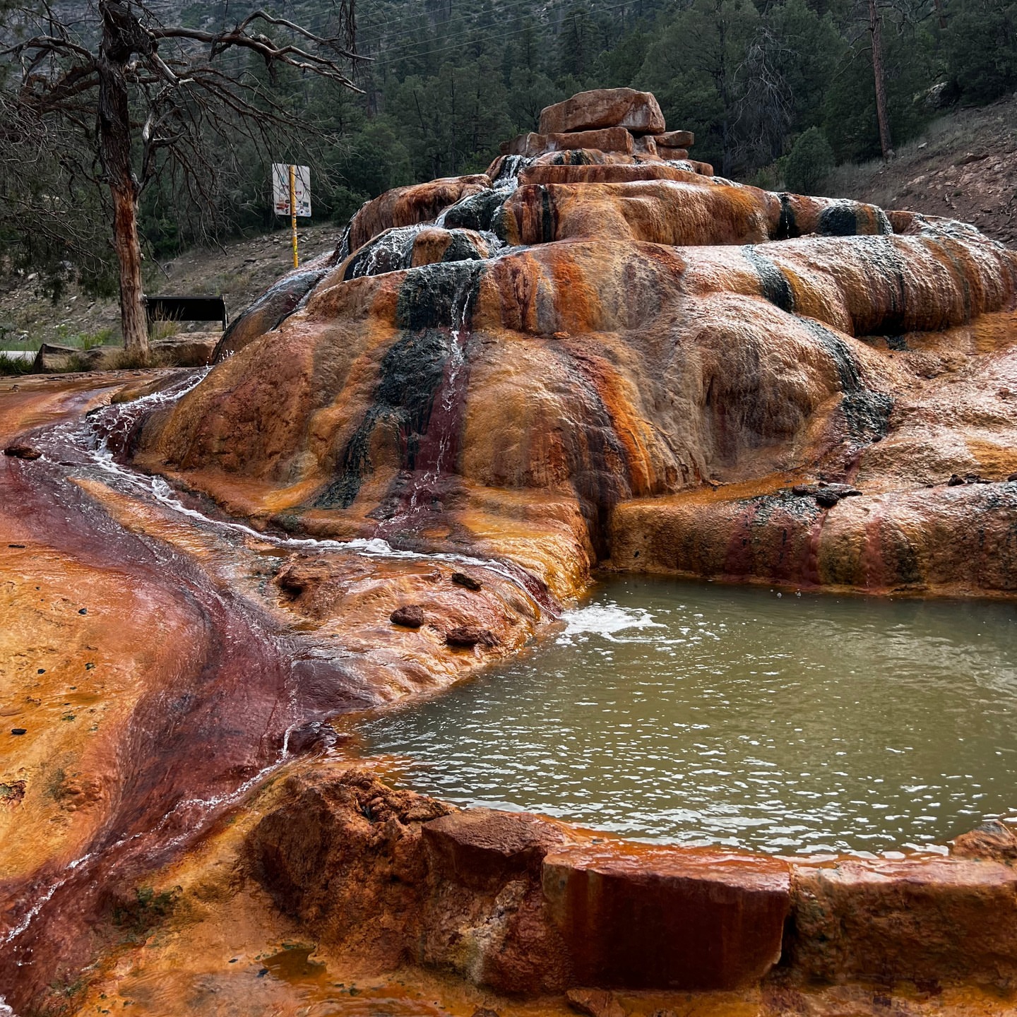 You don’t always have to pay for a spa. This is a roadside attraction near Durango. The water has created a big orange and pink rock mound.