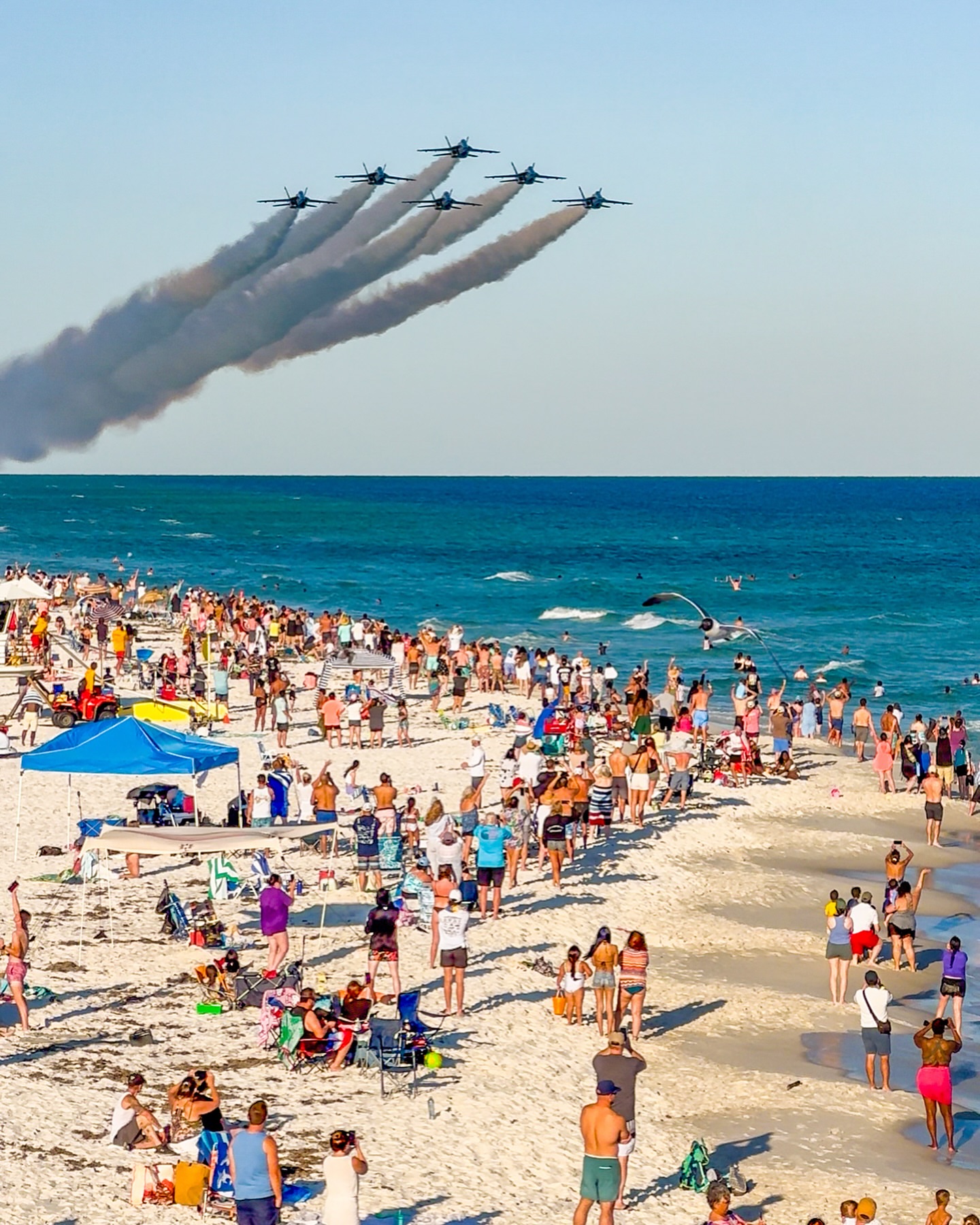 Picture this: giant blue jets flying fast over the emerald green water. That is what you get at the Pensacola Beach Air Show in Florida.